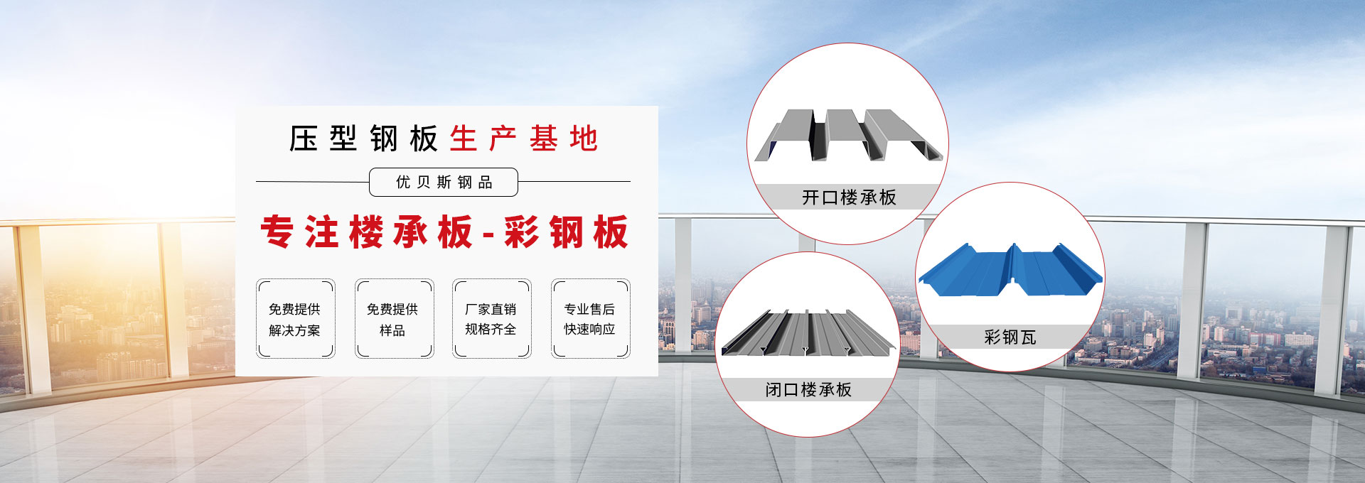 無錫優(yōu)貝斯鋼品有限公司主要生產(chǎn):樓承板,鋼承板,免澆筑樓承板,壓型鋼板,彩鋼板,閉口樓承板,開口樓承板,縮口樓承板價格優(yōu)惠及相關(guān)的鋼結(jié)構(gòu)輔材。 優(yōu)貝斯始終追蹤并處于鋼結(jié)構(gòu)建筑及其圍護(hù)系統(tǒng)技術(shù)的發(fā)展前沿,預(yù)制金屬屋墻板面和樓承板系統(tǒng)。優(yōu)貝斯擁有的技術(shù)和豐富實踐一直為客戶提供質(zhì)量的產(chǎn)品、鋼建筑系統(tǒng)解決方案和貼心的服務(wù)。